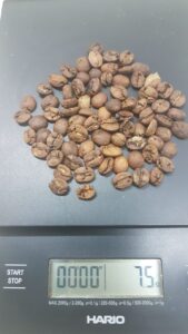7,5 gramas de grãos perfurados pela broca= 79 grãos por dose 7,5 gramas de grãos perfeitos = 59 grãos por dose